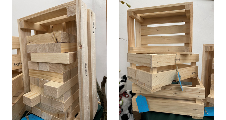Ansbach, 4. Dezember 2025 – Die Holzlatten der Skulptur „Alles im Fluss“ von Martin Steinert, die im Jahr 2023 am Schlossplatz stand, sind nun zu Holzkistchen und einem bekannten Holzschiebespiel verarbeitet worden. Nachdem das Bestehen der Skulptur als temporäres Konstrukt geplant war, haben sich einige Schul- und Kindergartengruppen an einer nachhaltigen Weiterverwendung der Holzlatten beteiligt.
