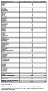 3204 (+ 32 im Vergleich zur letzten Meldung) der mit dem Coronavirus infizierten Personen stammen aus dem Landkreis Ansbach und 689 (+ 7 im Vergleich zur letzten Meldung) aus der Stadt Ansbach. Davon gelten 2073 Personen in Landkreis Ansbach (1507) und Stadt Ansbach (566) als genesen.