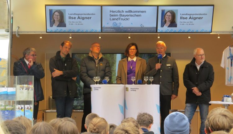 Für die Präsidentin des Bayerischen Landtags Frau Ilse Aigner bedeutet Demokratie ganz viel Freiheit (Wahlfreiheit, Pressefreiheit, Recht auf freie Meinungsäußerung). Um mehr Frauen in die Politik zu locken, hat man die Aktion „Bavaria ruft“ ins Leben gerufen. Frauen sind sehr engagiert, haben aber teilweise Schwierigkeiten mit der Kinderbetreuung. „Trauen Sie sich zu, man muss nichts mitbringen – man muss sich nur trauen“, ermuntert Frau Aigner die Frauen. „Mit dem LandTruck machen wir die Demokratie erlebbar und schaffen direkte Begegnungen zwischen den Menschen vor Ort und ihren gewählten Abgeordneten.“