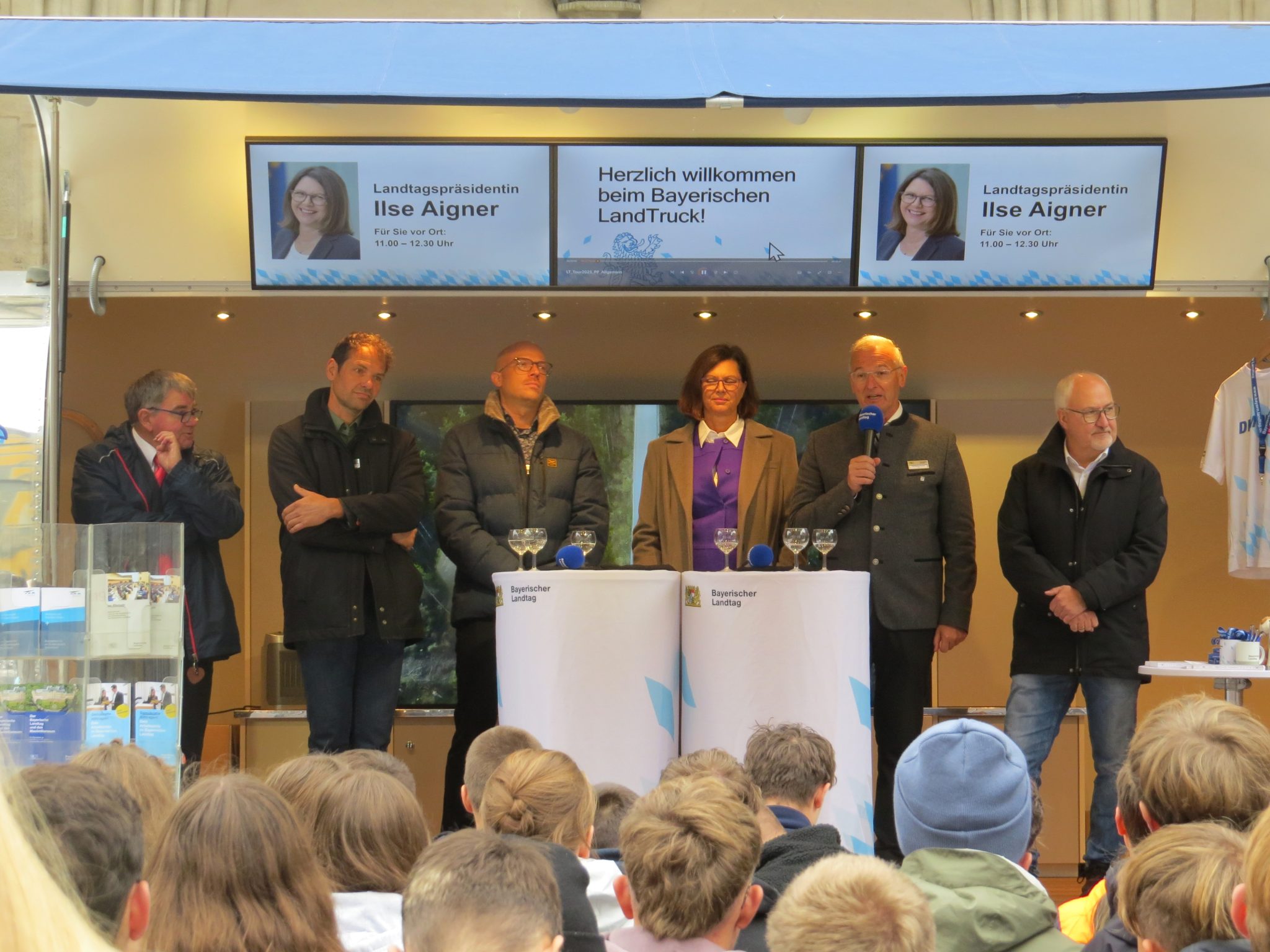 Am 26. September 2025 machte der Bayerische LandTruck Halt in Dinkelsbühl. Die Mitglieder des Landtags Helmut Schnotz (CSU), Wolfgang Hauber (Freie Wähler), Johannes Meier (AFD), Martin Stümpfig (Bündnis 90/Grüne) und Harry Scheuenstuhl (SPD) standen Dinkelsbühler Schülern und Bürgern Rede und Antwort.