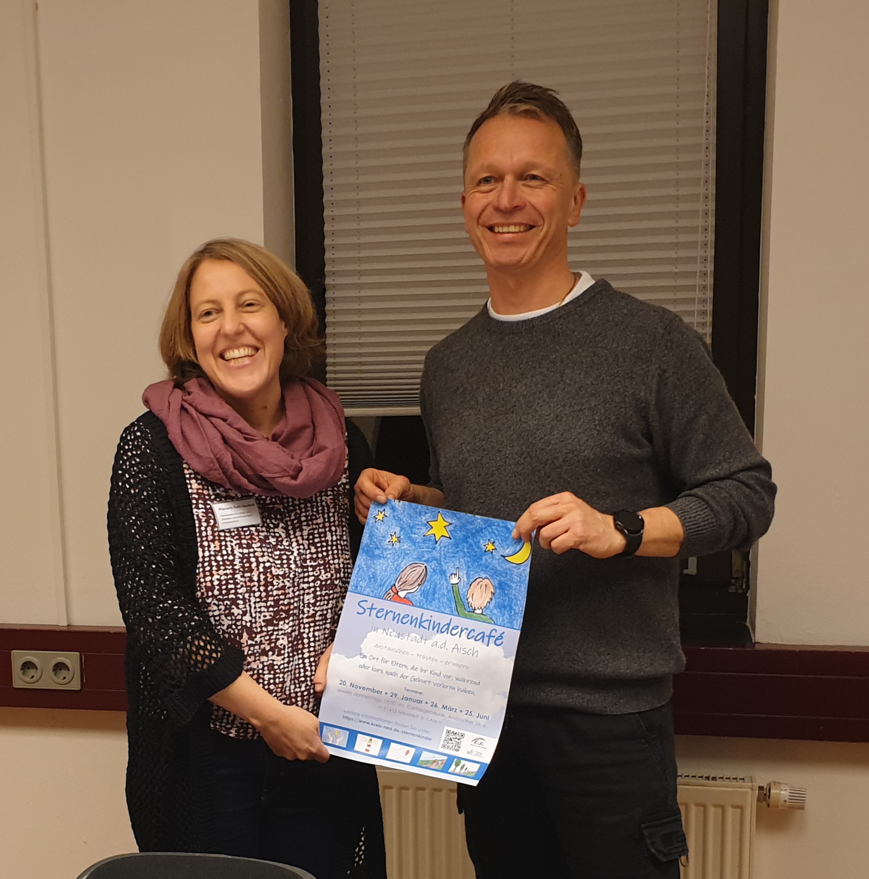 Kürzlich fand das erste Treffen des neu gegründeten Sternenkindercafés statt. Zu diesem offenen Treffen waren alle eingeladen, die ein Sternenkind in ihrem Leben tragen – ein Kind, das während der Schwangerschaft, unter der Geburt oder kurz danach gestorben ist. Sternenkinder hinterlassen trotz ihres viel zu kurzen Lebens tiefe Spuren. Sie leben weiter in den Herzen der Menschen, die sie lieben. Diesem besonderen Andenken in geschütztem Rahmen Raum zu geben, ist das zentrale Anliegen des Sternenkindercafés und der KoKi – Frühe Hilfen des Landkreises. Die Treffen werden geleitet von Mitgliedern des Arbeitskreises Sternenkinder der KoKi – ein selbst betroffener Vater mit jeweils einer Fachkraft aus der professionellen Seelsorge und Trauerbegleitung an der Seite. Gemeinsam bilden sie ein besonders einfühlsames Team, das Menschen in dieser unbeschreiblich traurigen Lebenssituation mit Erfahrung, Offenheit und großer Herzenswärme zur Seite steht.