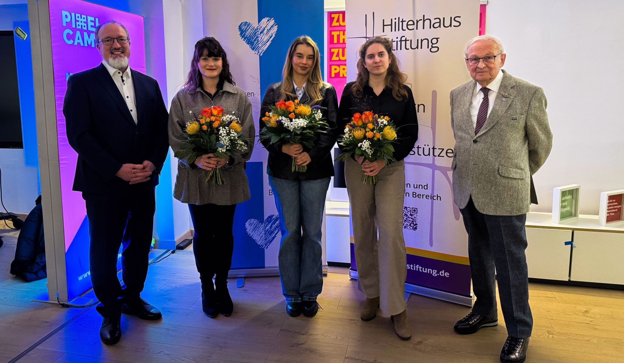 Die Preisverleihung fand im Pixel Campus, dem Medienzentrum der Hochschule Ansbach, statt. Stifter Friedrich Hilterhaus überreichte die Auszeichnungen persönlich. Die Hochschule Ansbach gratuliert allen Preisträgerinnen herzlich und dankt der Hilterhaus-Stiftung für ihre langjährige Unterstützung und ihren wertvollen Beitrag zur Förderung gesellschaftlichen Engagements.
