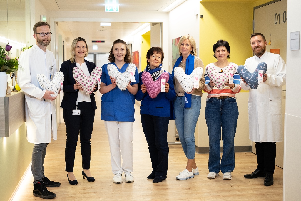 Ansbach, 28. März 2025 – Erneut haben fleißige Näherinnen des Katholischen Deutschen Frauenbunds (KDFB) dem Klinikum Ansbach bunte Kissen in Herzform gespendet. Gleich 70 von diesen haben Mitglieder des Zweigvereins Hilpoltstein in liebevoller Handarbeit hergestellt.