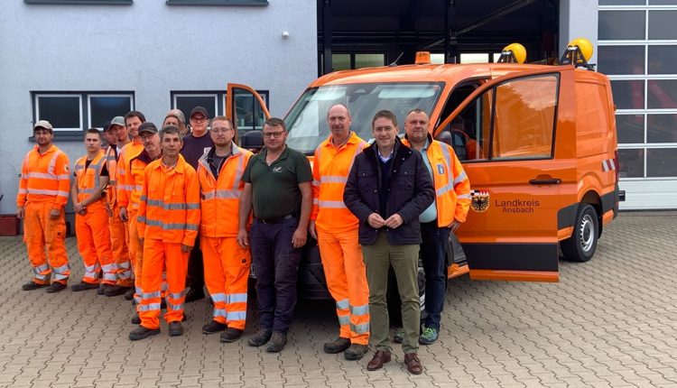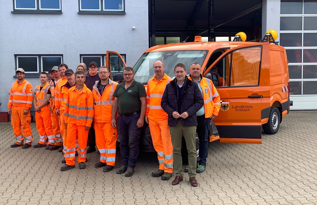 Ansbach, 8. Oktober 2025 – Landrat Dr. Jürgen Ludwig hat am Kreisbauhof Ansbach-Eyb ein neues Einsatzfahrzeug offiziell in Dienst gestellt. Der 163 PS starke Kleintransporter steht künftig den Straßenwärtern zur Verfügung, die regelmäßig den Zustand der Kreisstraßen überprüfen und kleinere Instandsetzungsarbeiten unmittelbar vor Ort durchführen.
