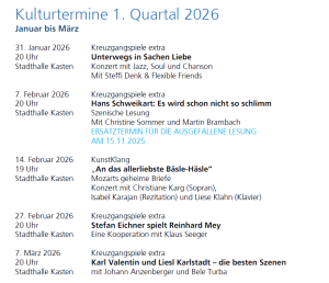 Alle für den Abend gekauften Karten behalten ihre Gültigkeit. Karteninhaberinnen und Karteninhaber müssen mit ihrer gültigen Eintrittskarte nur zum neuen Termin in die Stadthalle Kasten kommen. Wenn der Nachholtermin nicht passt, können Karten auch rückerstattet werden: Rückerstattungswünsche müssen bis zum 12. Dezember 2025 im Kartenbüro eingehen, damit Tickets entsprechend wieder in den Verkauf gehen können. Die Veranstaltung war ausverkauft.