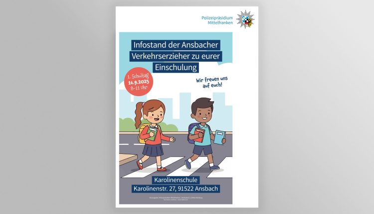 Mittelfranken + Ansbach: +++ Schulstart in Bayern – Das Polizeipräsidium Mittelfranken informiert an einem Infostand in Ansbach über die Gefahren des Schulwegs +++