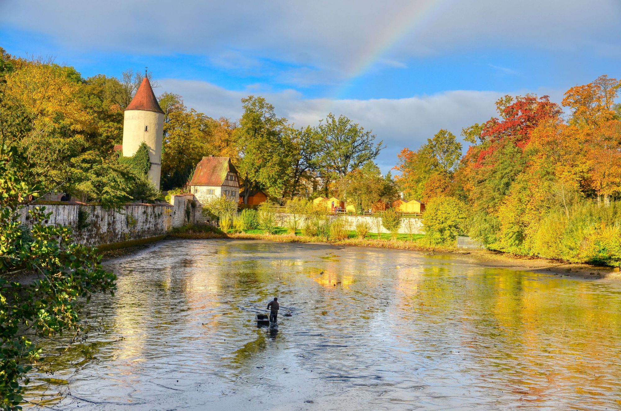 Das Abfischen der Weiher in der Fischerntewoche ist zu einem beliebten Fest in und um Dinkelsbühl geworden. Dieses wird von einem bunten Rahmenprogramm begleitet. Teichwirtschaft gibt es in Dinkelsbühl seit einem Jahrtausend. Sie hat die idyllische Weiher- und Flusslandschaft der Umgebung geformt: So viele Weiher wie es Tage im Jahr gibt, sollen es einst auf dem Territorium der Reichsstadt gewesen sein. Heute umäumen noch etwa 120 Fischteiche und naturnahe Bäche in schillernder Kette die Stadt an der Wörnitz. Bei einer sorgfältig zusammengestellten Wandertour kann man die urwüchsige Natur erkunden und die Landschaft voller jahrhundertealter Kultur entdecken.