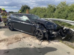 Eine 28-jährige Fahrzeugführerin wechselte mit ihrem Sprinter der Marke Iveco von der rechten auf die linke Fahrspur und übersah hierbei einen herannahenden Pkw. Durch den zu knappen Fahrtstreifenwechsel fuhr ihr ein auf der linken Fahrspur fahrender 34-Jähriger mit seinem Audi A4 von hinten auf. Durch die Kollision wurde der Audi gegen die rechte Leitplanke geschleudert und kam dort mit einem Totalschaden zum Stehen. Der Sprinter wurde am Fahrzeugheck beschädigt.