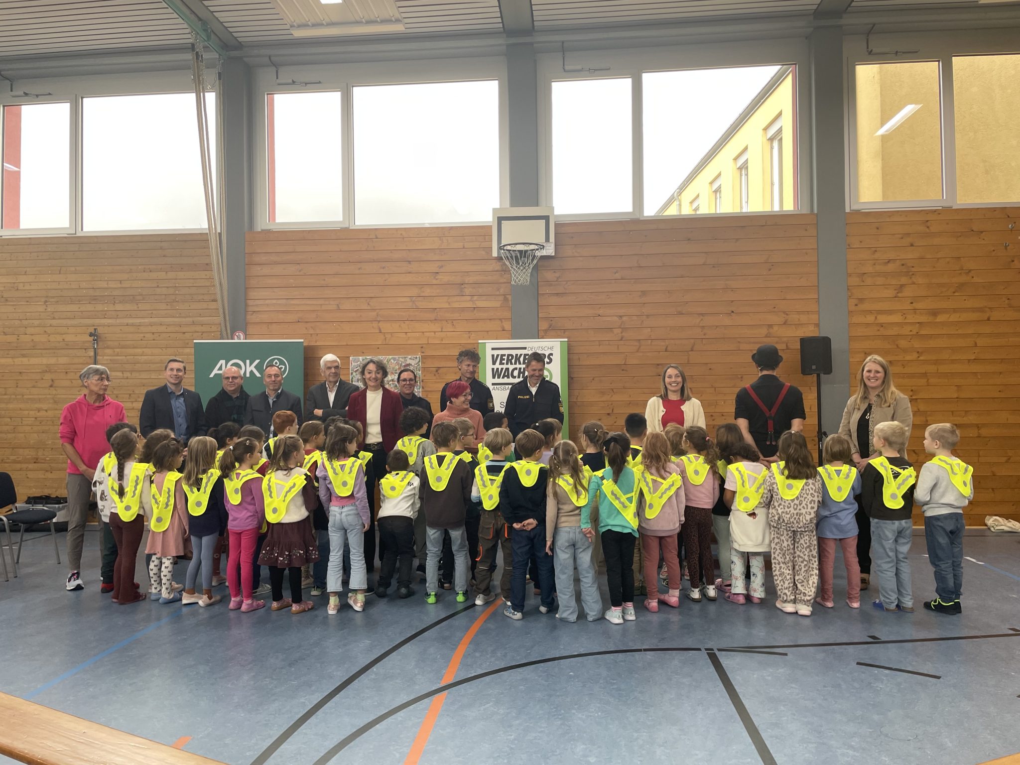 Bereits seit sechs Jahren arbeitet die AOK Bayern eng mit der Landesverkehrswacht Bayern zusammen, um die Erstklässlerinnen und Erstklässler mit Sicherheitsüberwürfen auszustatten. In diesem Schuljahr gehen sie bayernweit an rund 100.000 Schulanfängerinnen und -anfänger.