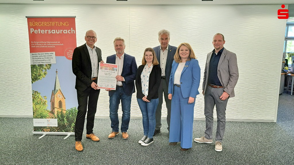 Ansbach/Petersaurach, 23. Mai 2025 – Am 20. Januar 2025 hatte der Gemeinderat von Petersaurach die Gründung einer kommunalen Bürgerstiftung in der von der Sparkasse Ansbach initiierten Stiftergemeinschaft Stadt und Landkreis Ansbach beschlossen. Am 20. Mai 2025 übergab Vorstandsvorsitzender Werner Frieß die Gründungsurkunde an den 1. Bürgermeister Herbert Albrecht.