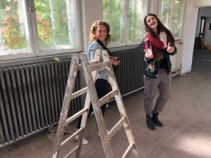Gemeinsam sichten wir, was ich an Kleidung dabei habe und fangen ganz gechillt an. Theresa malt mir ein Gesicht und macht meine Haare in Windeseile schön. Und dann geht es auch schon los: